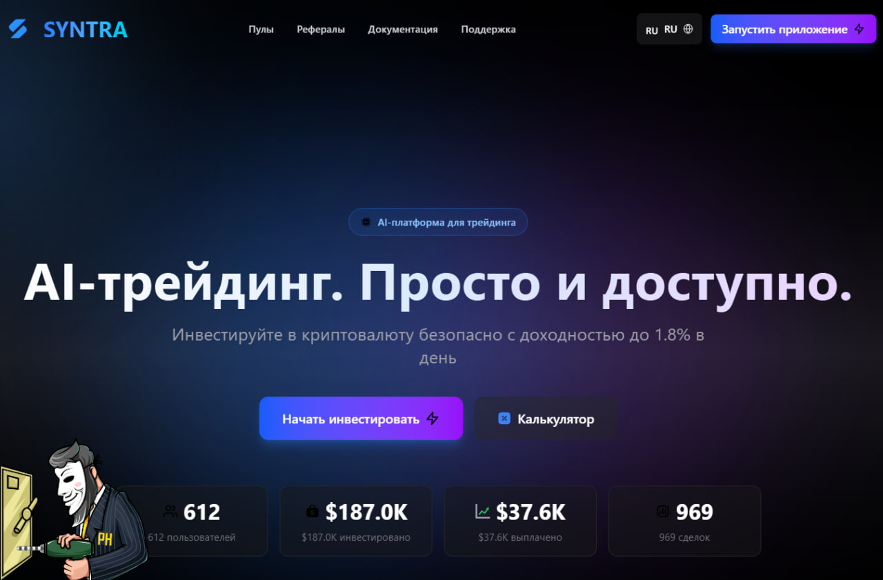 Обзор и отзывы проекта Syntratrade.xyz. Инвестиции в торговлю криптовалютами с доходностью до 1.8% в день.